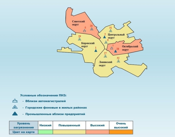 В Ленинском округе специалисты зафиксировали превышение диоксида азота, в Кировском округе – сероводорода. В целом по городу наблюдался «высокий» уровень загрязнения воздуха.